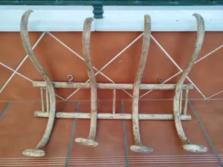 Preciosa perchero antiguo de metal. Ideal para darle un toque vintage a tu hogar. - Cinco ganchos funcionales. - Diseño clásico y elegante. - En buen estado, con señales normales de uso y paso del tiempo.