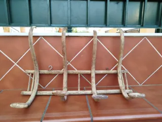 Este perchero artesanal es una pieza antigua con un diseño único. - Fabricado en madera. - Color madera natural 67 cms de ancho x 47 cms de alto
