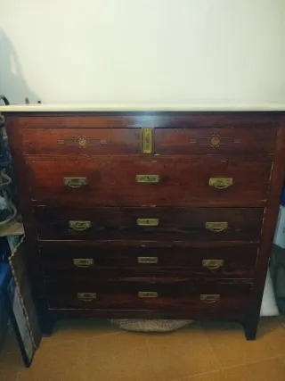 cómoda muy antigua de caoba africana!!!pertenecía a una persona muy importante en mi pueblo,escopladura para toda la vida cajones cola milano y taco de de cruceta en los ensamble!! está echa con grades ingenería !! !!y más la calidad de madera q es unas de las apreciada del mundo!!si deseas se puede restaurar y quedar nueva!!