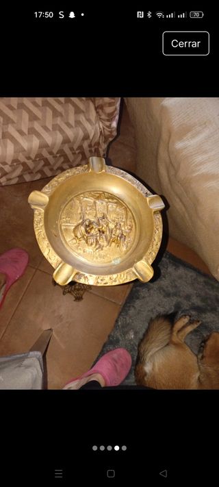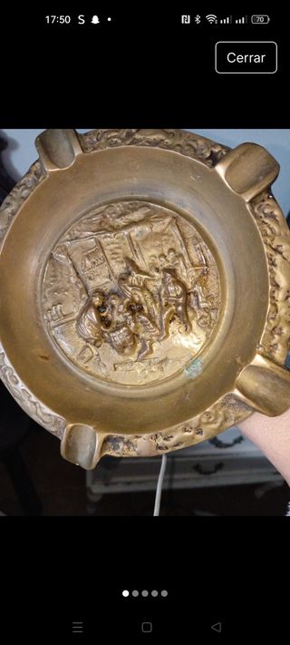 Cenicero antiguo con un diseño muy detallado y pie. - Pieza decorativa con relieve. - Base con soporte.