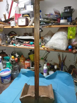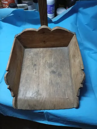 Recogedor antiguo con un diseño clásico.mide el rabo 73 cm, y la base 26 x 30 x 11 de altura. Está sanisimala madera, tiene refuerzos de chapa - Fabricado en madera. - Color marrón.