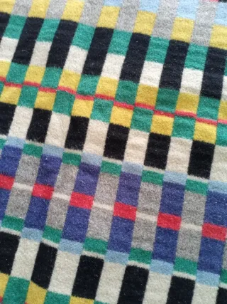 Manta antigua con un diseño geométrico vibrante y llamativo. Perfecta para añadir un toque de color y calidez a cualquier espacio. - Patrón de cuadros en varias tonalidades. - Textura suave y acogedora.