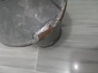 Vasija de latón con un diseño clásico y un acabado metálico. - Asa superior para facilitar el transporte. - Asa lateral para un agarre cómodo. - Tapa con un pequeño asa.