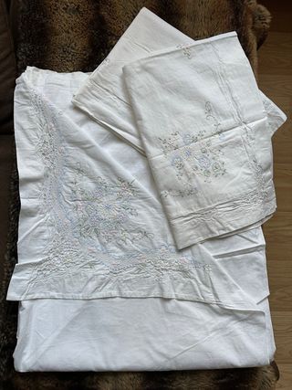 Sábanas antiguas bordadas a mano para cama de 150