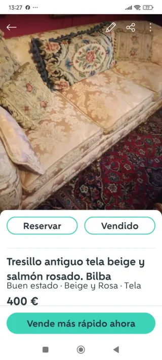 Tresillo antiguo tela salmón