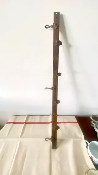 Barra de hierro antigua ideal para colgar utensilios de cocina, herramientas o decoración. Estilo rústico/industrial, muy decorativa.Se puede instalar en pared a mueble. Pieza original con pátina. Largo: 76 cm Ancho: 3-3,5 cm Barra hierro colgar utensilios rústica vintage industrial cocina taller decoración pared