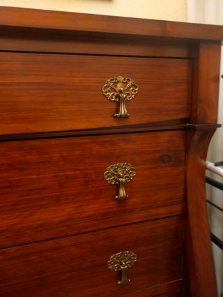 Mueble sinfonier de madera maciza con detalles en metal dorado. Su diseño clásico y elegante lo hace una pieza única.solo RECOGIDA. BILBAO - Estructura de madera de alta calidad. - Tiradores ornamentados de metal.