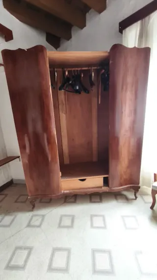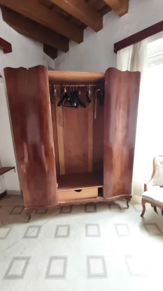 Se regala Disponible A recoger en 4° piso sin ascensor. Armario antiguo de madera con un diseño clásico. - Sin puerta. - Cajón inferior. - Barra para colgar ropa.