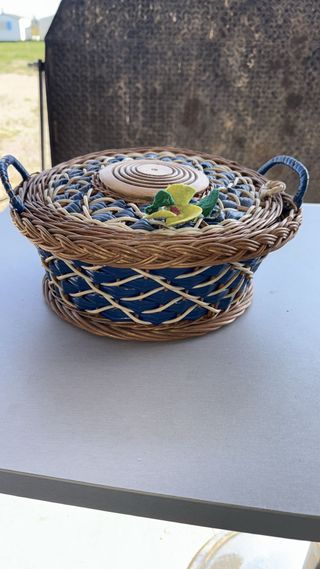 Antiguo costurero de mimbre Diámetro 29 cm Alto 11 cm