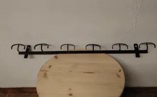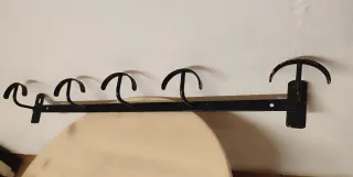 Este perchero de hierro antiguo aporta un toque vintage a cualquier espacio. Su diseño clásico lo hace ideal para colgar abrigos, sombreros o bolsos. - Fabricado en metal resistente(hierro). - Color negro. - Diseño con cinco ganchos. - Medidas: 90×12×11