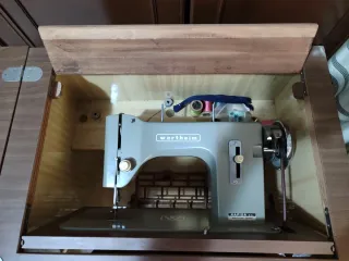 Maquina antigua de coser alfa con su mueble, lleva manual de instrucciones y accesorios. Estamos en la calle Joaquín Rubio i Ors 195 de Cornella.
