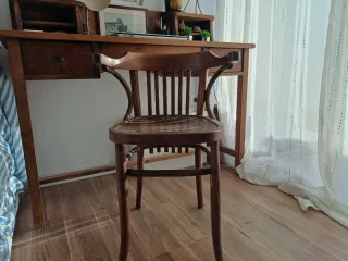 Silla antigua con un diseño clásico y elegante. - Fabricada en madera. - Color marrón.