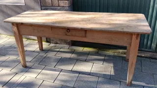 Mesa antigua con un diseño rústico y encantador. Perfecta para añadir un toque vintage a tu hogar. - Fabricada en madera. - Color natural de la madera. Mesa sin restaurar, 400€ Restaurada 950€