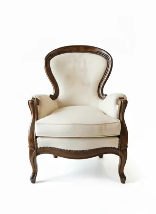 Elegante sillón antiguo madera tallada beige