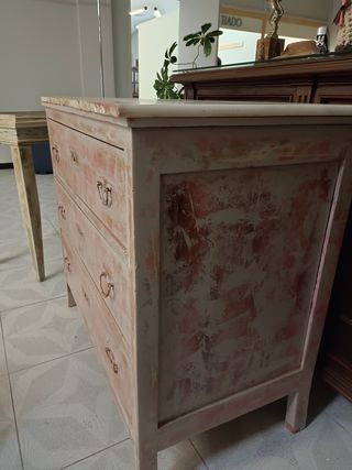 Cómoda muy antigua restaurada. Tiene tres cajones y tapa de marmol. No hago envías retirada y pago en persona.Huelva capital