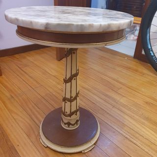 Mesa auxiliar antigua mármol y madera