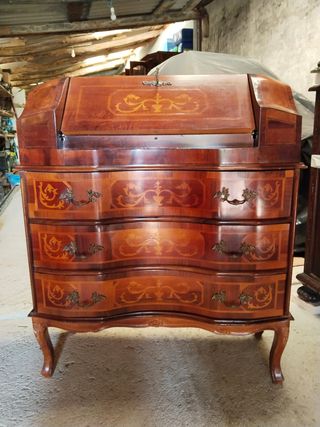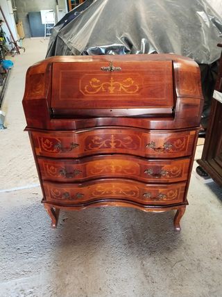 Buró antiguo de madera con incrustaciones
