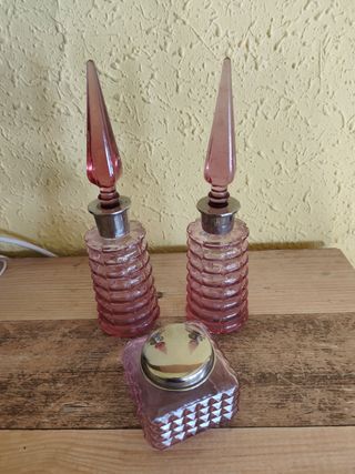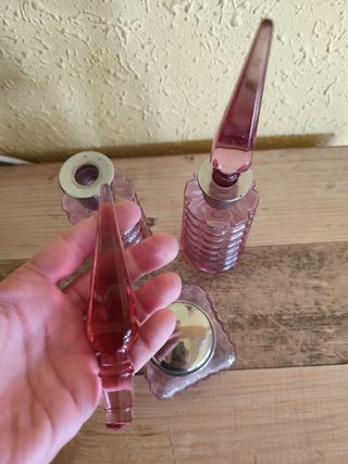 Tocador antiguo de cristal, Años 50-60, buen estado, medidas botellas 25 cm y pote de 6 cm,No negociable envíos bien embalados listos para enviar más artículos interesantes en mi perfil a precios económicos