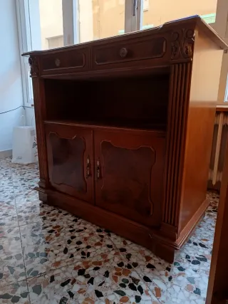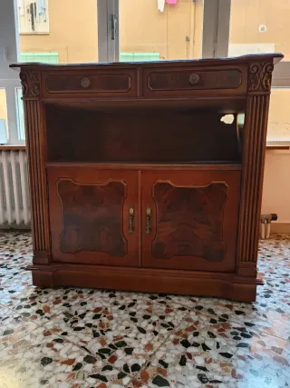 Bonito mueble de madera para TV o recibidor. Se encuentra en buen estado. - Dos cajones en la parte superior. - Dos puertas en la parte inferior. - Estilo clásico y elegante. - Ideal para salón o dormitorio.