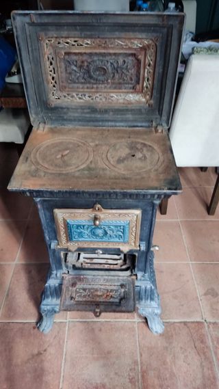 Preciosa estufa antigua de cerámica y forja, modelo Ornilla. Un elemento decorativo con mucho encanto. - Diseño clásico con detalles ornamentales. - Superficie superior con dos círculos. - Puerta frontal con rejilla y tirador. en este estado es casi imposible de conseguir a día de hoy