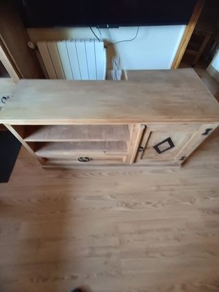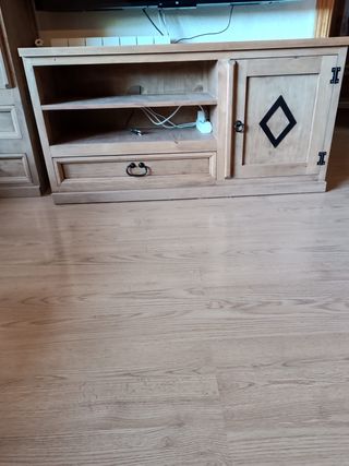 Bonito mueble de TV de madera, estilo rústico mexicano. Ideal para darle un toque único a tu sala. - Perfecto para colocar una televisión de tamaño mediano o grande o como alacena,etc - Dos cajones con tiradores de estilo antiguo. - Un estante para colocar aparatos electrónicos.recogida en persona, no hago envío.precio negociable.