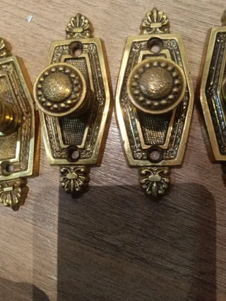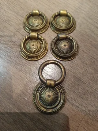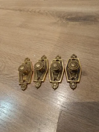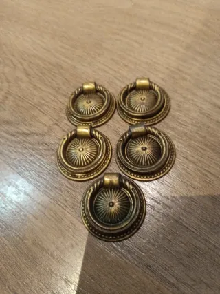 Conjunto de cuatro tiradores con un diseño clásico y elegante, perfectos para dar un toque vintage a tus muebles. - Fabricados en latón o bronce con acabado dorado. - Diseño ornamentado con motivos vegetales. - Ideales para cajones, armarios o cómoda Tengo 4 mas