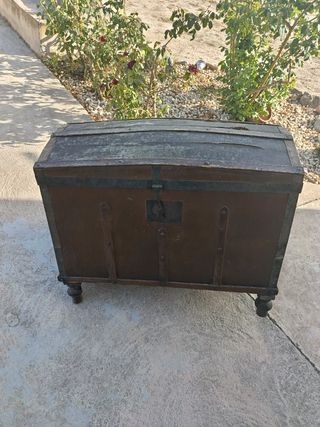Antiguo baúl de madera y metal, ideal para decoración o almacenaje. Se encuentra en buen estado, aunque muestra señales del paso del tiempo que le dan un encanto único. - Perfecto para dar un toque vintage a tu hogar. - Diseño clásico y robusto. - Ideal para guardar objetos preciados.