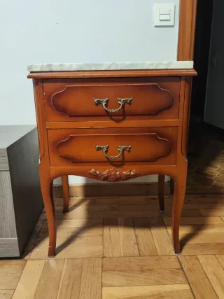 Mesita de noche antigua con mármol