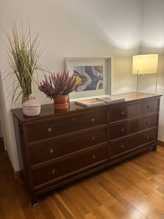 Cómoda antigua de madera beige y marrón