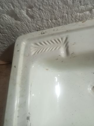 MUY ANTIGUO, MAS DE 100 AÑOS LAVABO O PILETA DE LOZA SIN ESTRENAR NUNCA. AHORA CON MUCHO POLVO PERO SE ENTREGARIAN LIMPIOS. ESTA TOTALMENTE COMPLETO Y EN BUEN ESTADO. SIN ROTURAS NI ESTALLADURAS Y MIDE EN TOTAL DE ANCHO 56 CM X 42 CM DE FONDO Y 15 CM DE HONDO. DISPONGO DE 2 UNIDADES