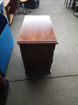 Mueble de estilo clásico con un diseño elegante. - Acabado en tono madera cálido. - Detalles ornamentales en los cajones y la puerta. - Incluye un pequeño compartimento superior.