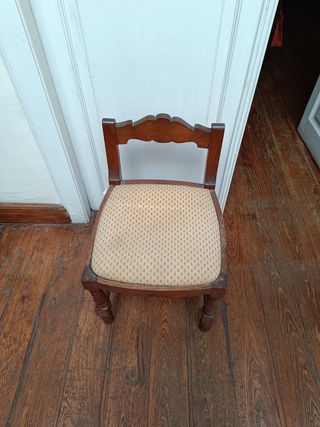 Pareja de sillas antiguas de madera, en color negro. Son perfectas para darle un toque vintage a tu hogar. Desconozco la marca pero la app obliga a poner una. 45€ c/u. - Diseño clásico y elegante. - Se encuentran en buen estado, considerando su antigüedad. - Ideales para comedor o cualquier espacio con estilo retro.