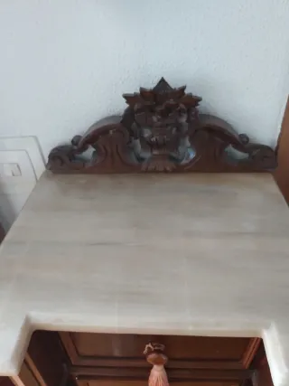Muele antiguo mostrador de los años 70 madera y espejo con la base de mármol y 8 huecos para meter cosas. Buena calidad. Solo hay 4 en el mundo de este modo Pesa muchísimo. Mide 105 de ancho 45 cm de fondo 87 cm de alto tiene un cristal pequeño roto pero sin importancia Solo 3 piezas en todo el mundo Elegante mostrador antiguo de madera y mármol, ideal para darle un toque vintage a tu hogar u oficina. Se encuentra en buen estado