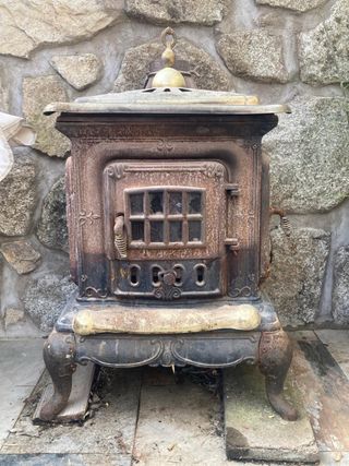 Preciosa estufa antigua de hierro fundido, ideal para decoración o coleccionistas. Funciona perfectamente, y aunque está oxidada se encuentra en buen estado para sus años, aunque presenta señales normales de uso y paso del tiempo. - Diseño clásico y elegante. - Piezas de metal con detalles ornamentales. - Perfecta para dar un toque rústico a tu hogar. En principio habría que irla a buscar a Peguerinos (Ávila), pero se puede hablar