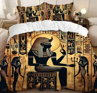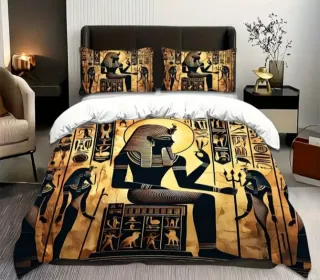 Funda nórdica con un diseño inspirado en el Antiguo Egipto. Presenta imágenes detalladas de faraones y jeroglíficos. - Diseño de Antiguo Egipto. - Incluye funda para edredón y fundas para almohadas. Cama extracrande, 150 o 180 cm Medidas 230x240 Nueva Incluye dos fundas de cojines o almohadas.