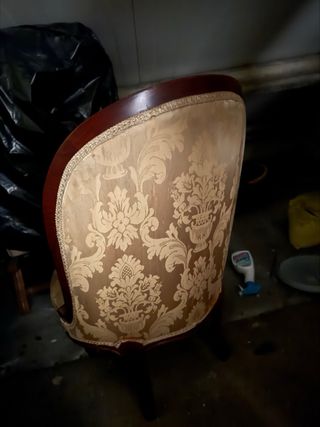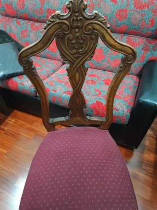 Se ofrece una preciosa colección de muebles antiguos de madera. Son piezas con encanto, ideales para dar un toque clásico o vintage a tu hogar. - Incluye seis sillas y una cabecera de cama. - Las sillas presentan un diseño elegante con detalles tallados. - La cabecera de cama tiene una forma curvada y un acabado pulido. Se escuchan ofertas