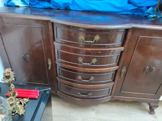 Regalo aparador antiguo con un diseño curvo y detalles ornamentales. Está en uso pero tiene 2 patas rotas para arreglar. URGE, SI NO LO RECOGE NADIE ENTRE HOY Y MAÑANA LO TENGO QUE TIRAR Está en una primera planta de una casa unifamiliar y no entra por la escalera, hay que bajarlo entre varias personas por la terraza