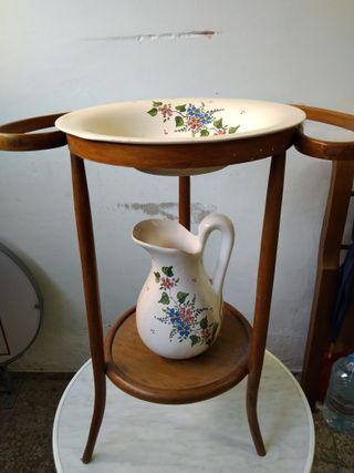 Lavabo antiguo con espejo y jarra