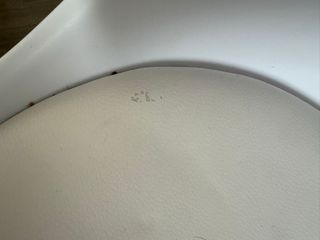 Conjunto de cuatro sillas de comedor con un diseño moderno y elegante.Tapizadas en skay blanco , está estropeado, habría q tapizarlas - Patas de metal.