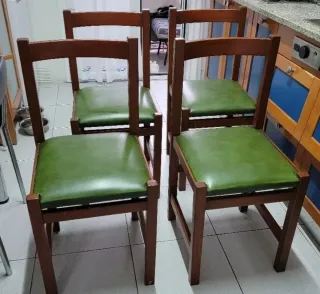 4 Sillas Madera Comedor Tapizado Verde