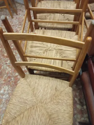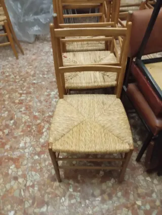 Silla con asiento de anea y estructura de madera de nogal. Cantidad 30 sillas y sillas de comedor para restaurante apilable cantidad 115 - Asiento tejido a mano. - Patas de madera maciza.