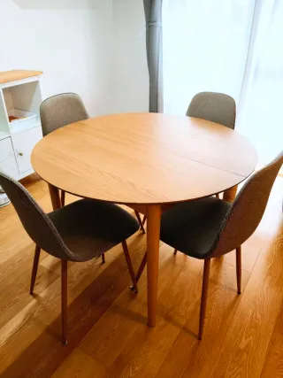 Mesa comedor extensible madera + 4 sillas