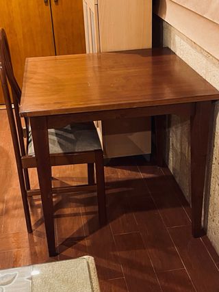 Mesa 90x90 y 4 sillas madera