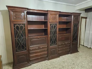 Mueble de comedor de madera con varios compartimentos y puertas. - Diseño clásico y elegante. - Acabado en madera oscura. - Amplio espacio de almacenamiento. Más mesa con 8 sillas el que se lo lleve tiene que desmontarlo