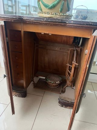 Mueble para máquina de coser antigua, ideal para restauración. - Diseño con tapa abatible. - Espacio interior para accesorios.