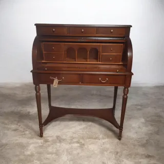 Elegante mueble secretaire con un diseño clásico y funcional. - Acabado en madera de alta calidad. - Cajones con tiradores. - Tapa enrollable. Disponible en la tienda de calle Andrés Martínez Zatorre 3 en horario comercial.