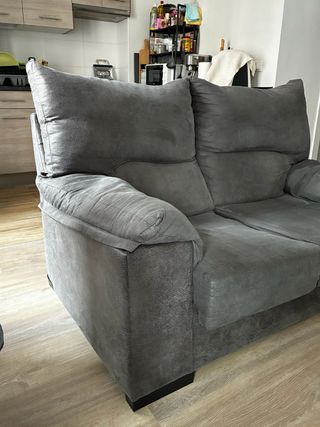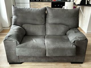 Sofá de dos plazas en buen estado. Su diseño moderno y su tapizado lo hacen ideal para cualquier salón. - Tapizado en tela. - Color gris. - Fundas lavables.