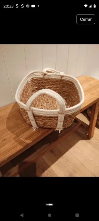 Cesto decorativo con asas, perfecto para organizar o almacenar objetos. - Diseño trenzado. - Asas resistentes para facilitar su transporte.