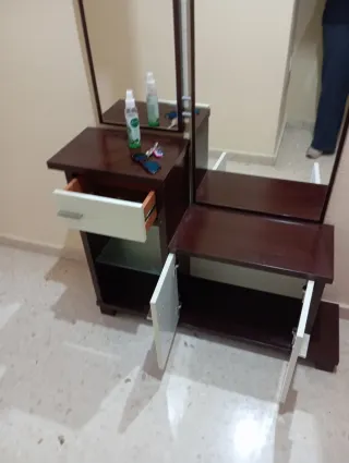 Se vende mueble de entrada en perfecto estado, tal y como se aprecia en las fotos. Incluye cajones de almacenaje muy prácticos y un espejo elegante, ideal para dar amplitud y estilo a la entrada de tu hogar. Además, dispone de espacio para colocar una bombilla o lámpara, lo que lo hace aún más funcional y acogedor. El conjunto puede separarse si lo prefieres. PRECIO NEGOCIABLE EN CASO DE NECESIDAD DE TRANSPORTE