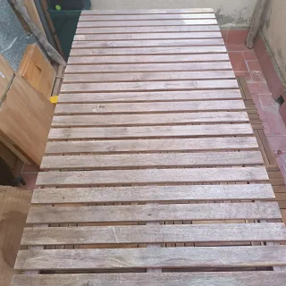 Mesa exterior de madera, perfecta para terraza o jardín o barbacoa - Mesa de madera con diseño de listones de madera maciza - Medidas 150x90 Recogida en Bigues i Riells del Fai, Barcelona Se pueden hacer envíos a través de Wallapop voluminosos